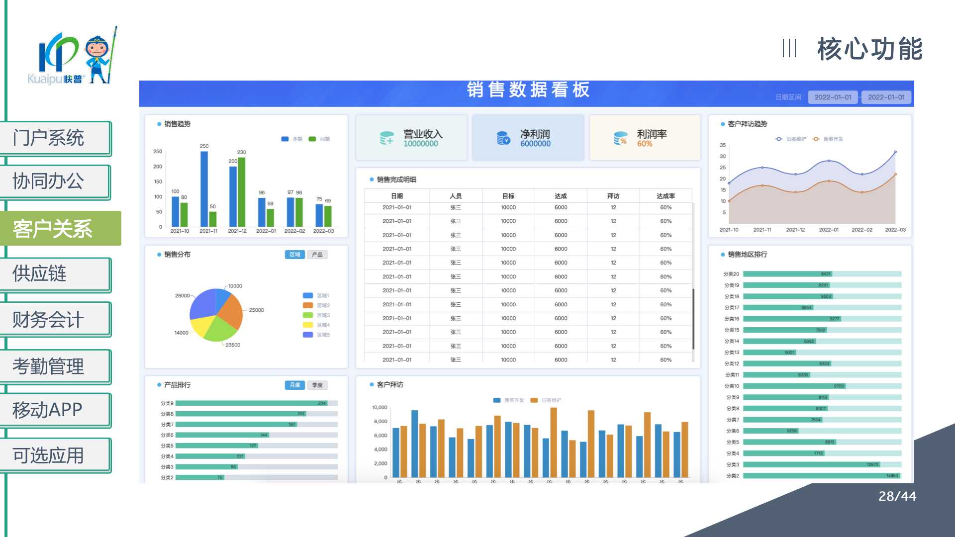 快普易10(商貿(mào)版)提供以客戶為中心的數(shù)字化管理解決方案,涵蓋客戶、銷售、庫存、資金、財務(wù)等業(yè)財一體化管理,全面優(yōu)化流程、提高企業(yè)效率,讓每一筆生意明明白白!