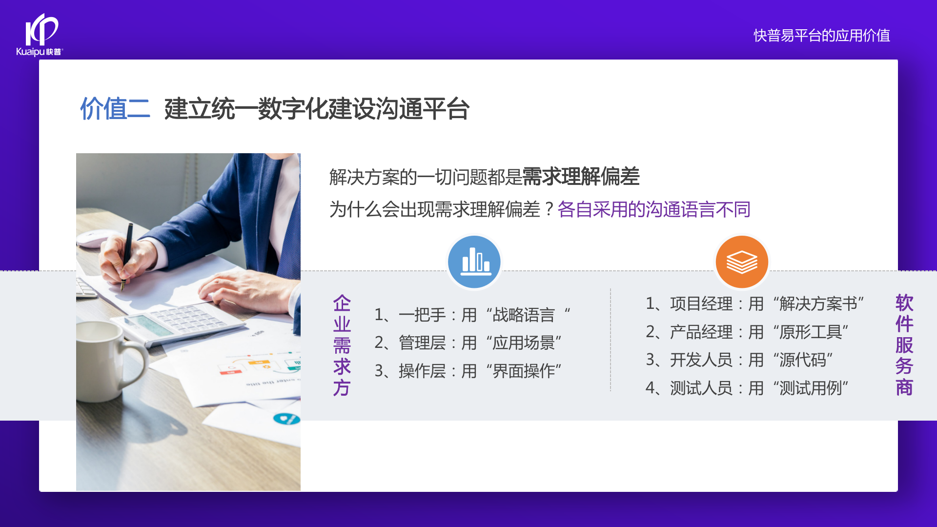 過去企業(yè)用的ERP系統(tǒng),都不能完全理解、看透它的邏輯。因?yàn)椴涣私膺壿嫞涂床煌?,就用不好系統(tǒng)。快普經(jīng)歷了大量的客戶,發(fā)現(xiàn)如果用戶理解系統(tǒng)邏輯,會用得更好,提的需求也更合理、更結(jié)構(gòu)化。但過去確實(shí)沒辦法讓所有普通用戶看懂源代碼。