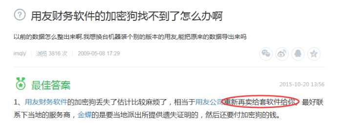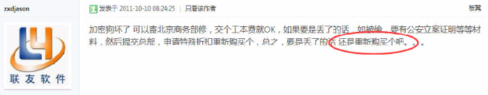 1、有一家客戶(hù)反應(yīng)公司搬遷時(shí)快普軟件加密狗丟失并且提供了公安局蓋章證明原件,事后發(fā)現(xiàn)原來(lái)的軟件加密狗并沒(méi)有丟失,還在正常使用,經(jīng)過(guò)多次溝通拒不還回新發(fā)的軟件加密狗。
